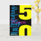 Customizable 50thBirthday Greeting Card with Big number (age) and name in yellow, dark green blue, pink and mint colors. You can easily change text (color, font, size and position) by clicking the customize button. Other models are available.