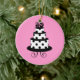 Lovely anniversary keepsake ornament has talk black and white cake with 50 on top, and personalized names and date on the back. Use the designer tool to add your own custom names and anniversary date! Great personalized anniversary gift for your special celebration.