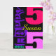Customizable 55thBirthday Greeting Card with Big number (age) and name in purple and pink colors. You can easily change text (color, font, size and position) by clicking the customize button. Other models are available.