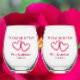 Create a meaningful keepsake with these stylish 60th anniversary glasses. Personalize these quality stemless wine glasses with the couples names and wedding and/or anniversary date. Simple, elegant script saying "celebrating 60 years" can be edited to any number for another anniversary year. Two intertwined hearts super imposed with the delicate floral print of a red pink peony rose photograph I took in my flower garden give an original romantic touch. This is a great wedding anniversary gift for the couple, or a keepsake party favor for party guests.