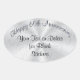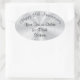 Personalized 60th Anniversary Stickers with my YOUR TEXT or Delete text for blank anniversary stickers to hand write your guests names. Beautiful translucent swirls under silver colored background. "Happy to 60th Anniversary" arched on oval sixtieth wedding anniversary stickers.