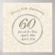 Soft subtle off white ecru color with platinum colored "Happy 60th Anniversary" arched over a large "60" and YOUR TEXT encircled by a platinum printed circle. Beautiful anniversary memory and nice addition to your 60th anniversary decorations and supplies. Call Linda 239-949-9090