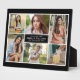 Celebrate your graduate's journey with this landscape six-photo collage plaque featuring a center panel with the class year, graduate's name, and school name in elegant type on a black background. Upload six favorite photos from childhood through senior year for a meaningful tabletop display. The background color is customizable to match school colors. A beautiful graduation party display or lasting family keepsake.