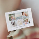 Personalized 6 family photos Universal Greetings Postcards featuring a stylish photo collage with 6 customized images, your greetings message in elegant handwritten script font, your name, date, year, message on the back in a modern and simple sans serif font.