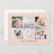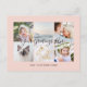 Personalized 6 family photos golden hour blush pink cute chic feminine Universal Greetings Postcards featuring a stylish photo collage with 6 customized images, your greetings message in elegant handwritten script font, your name, date, year, message on the back in a modern and simple sans serif font.