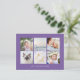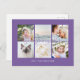 Personalized 6 family photos professional purple Universal Greetings Postcards featuring a stylish photo collage with 6 customized images, your greetings message in elegant handwritten script font, your name, date, year, message on the back in a modern and simple sans serif font.