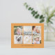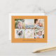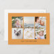 Personalized 6 family photos modern orange Universal Greetings Postcards featuring a stylish photo collage with 6 customized images, your greetings message in elegant handwritten script font, your name, date, year, message on the back in a modern and simple sans serif font.