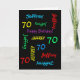 What a wonderful, personalized greeting card for a 70th birthday or any other occasion. On the cover, Name and Age repeats in different fonts and colors on a black background. Easy to personalize - just CHANGE NAME, AGE, and OCCASION in ONE PLACE. Supports name up to 9 characters. A colorful and fun Birthday CARD. Kids, teenagers, and adults will love it! Also easy to modify inside text, if desired. All Rights Reserved © 2014 Marcia Socolik.