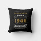A personalized classic throw pillow design for that birthday celebration for somebody born in 1946 and turning 80. Add the name to this vintage retro style black, white and gold design for a custom birthday gift. Easily edit the name and year with the template provided. A wonderful custom black birthday gift. More gifts and party supplies for that party celebration available with the "Legendary" design in the store.