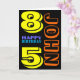 Customizable 85th Birthday Greeting Card with large number in yellow and name in orange. Perfect for him. You can easily change text (color, font, size and position) by clicking the customize button.