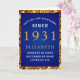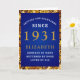 Personalized 90th Birthday 1931 Blue Gold Elegant Card