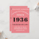 For those born in 1936 and celebrating their birthday party we have the ideal birthday invitation card. The pink background with a white and black design is simple and yet elegant. Easily customize the text to the front and the rear of this birthday invitation card using the template provided. Part of the setting standards range of cards, party supplies and gifts.