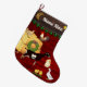 Perfect! Exactly what I ordered! I uploaded a picture of my blue chow, and the screen print was incredible. the back side of the stocking was the red and black checkered print. my puppy's name was also printed on the cuff of the stocking. PERFECT! Highly recommend this product! My puppy's name was screen printed onto the cuff of the stocking, the font was perfect!