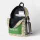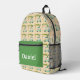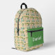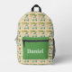 This fun personalized backpack, featuring a playful golf pattern with golf carts, golf shoes, golf clubs and balls and a golf putting green with bunker.