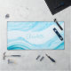 Personalized abstract watercolor computer or laptop large desk mat with blue waves. Ideal home office decor that can be customized with a name or any text.