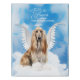 Memorialize your sweet Afghan Hound dog by adding their name to this precious angel dog with wings and a halo floating on clouds in heaven and a lovely message of their happiness in the afterlife.