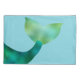 Personalized African American, Black, Ethnic Mermaid Faux Foil Kids Pillowcase. Adorable little mermaid with faux foil green tail, magenta pink tank top and pink starfish in her dark black hair. Edit to change font choices. Background is pretty ocean blue color. Coordinating mermaid, merman, and pirate items. Coordinating mermaid, merman, and pirate items. Contact for custom order requests. Mermaid, ocean, sea life themed designs. ww.SamAnnDesigns.com