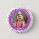 Happy Birthday to you, add name, age and photo to this personalized birthday button. Cute pink and purple confetti background.