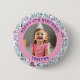 Happy Birthday to you, add name, age and photo to this personalized birthday button. Purple, pink and sage green floral background.