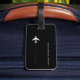 An elegant item with the graphic image of a white airplane in a circle, on black (custom color) background personalized with your own initials... to identify your belongings