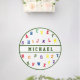 Kids Personalized Alphabet design features the alphabet in bright, colorful stencil lettering, just like that of the refrigerator magnets we all know! Child's name is displayed in bright red letters across the center of design. A great addition to any kids' bedroom! Comes in a variety of colors.