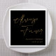Elevate your special day with our exquisite "Always and Forever" wedding napkins. The hand-lettered design features a captivating heart vector in a lustrous gold color accent against a sophisticated black background. What makes these napkins truly special is the option for personalization. You can add your names and wedding date in a stunning gold color accent, making them a unique and memorable addition to your celebration. These napkins combine elegance and sentiment, perfect for adding a touch of luxury to your wedding reception.