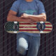 Skating is all about having fun, and there is something for everyone in our skateboard range. A fabulous skateboard guaranteed to raise a smile! . Show your American pride or give a special gift with this USA American Flag skateboard in a distressed worn grunge design on wood . This united states of America flag skateboard design with stars and stripes in red white and blue. Have fun with your personal message-.skating the streets and skatepark, or cruising.