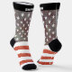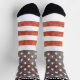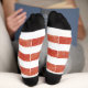 US flag men's crew socks with custom name. A nice patriotic design inspired by the American flag with stars and stripes. The top of each of the socks is black and includes a line of custom text, ideal for your to personalize it with your name.