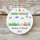 A Personalized Travel Souvenir Ornament designed to celebrate your unforgettable trip. Whether you went for work, enjoyed a romantic getaway, or took part in a school exchange program, this ornament commemorates a special moment you’ll always cherish and want to remember for years to come. This vibrant skyline ornament featuring cityscapes, dreamy clouds, and twinkling stars. Perfect for travelers and city lovers alike!