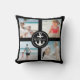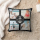 Custom printed black throw pillow with space for family name in the center of anchor and 4 photos. A perfect gift for family, friends, newlywed couples, parents, and grandparents! This template works best with photos that are already cropped to squares before uploading.