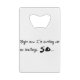 Why are credit cards bottle openers, personalized just for you, so popular? Take a look at this one! It is a multi-colored high-quality bottle opener that will last for years. You can even design your own with your own photos, art and graphics to get the exact message you want. This credit card bottle opener can be wedding favors, gifts to family, friends and co-workers and you can get one for yourself.