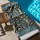 These stylish animal print beach towels can be personalized with your name and any custom wording you'd like to include. Featuring a teal blue background with gold and black leopard print.