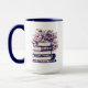 Pretty pink and blue vintage pile of books with roses on the top AI art personalized cofffee mug.