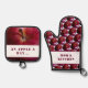 Personalized Apple Pattern Oven Mitt & Pot Holder Set