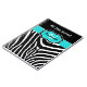 This monogrammed black and white zebra print stripes pattern note book with turquoise blue accents has template boxes for you to add your name, monogram, and other text. If you need help customizing this item, please email niteowlstudio@gmail.com for assistance.