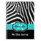Personalized Aqua Black White Zebra Stripe Journal