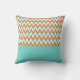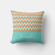 Personalized Aqua Blue White Orange Chevron Throw Pillow