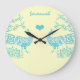 Vintage Love Birds Aqua Peacock Cherry Blossom Custom Wall Clock - Your Name - or change to read whatever you like.