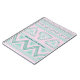 An aqua and teal tribal pattern sits atop a pink background the color of ballet slippers, making this intricate design not just feminine but also bold and earthy. You can use the template to easily personalize with the name or saying of your choice.