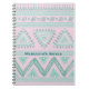 Personalized Aqua-Teal Tribal Pattern on Pink Notebook