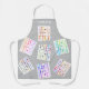 This colorful apron is decorated with a watercolor pattern on a gray background.