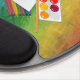The plastic backing is nice and sturdy. The grippy pads underneath keep the mouse pad where I put it on my table. The pad the mouse sits on is cut well to fit the backing. The wrist pad is perfectly soft, supportive, and thick. I'm left-handed, and this mouse pad works just as well for me as it does for my right-handed friends. I'm the designer of HippieClecticHope products. I'm blown away by how well my intricate fractals turn out on the tangible items in the Zazzle Marketplace. This particular mouse pad ***appears*** like a 3D object... A mathematically-engineered rainbow black opal, inlaid under transparent fabric...