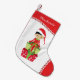 Perfect! Exactly what I ordered! I uploaded a picture of my blue chow, and the screen print was incredible. the back side of the stocking was the red and black checkered print. my puppy's name was also printed on the cuff of the stocking. PERFECT! Highly recommend this product! My puppy's name was screen printed onto the cuff of the stocking, the font was perfect!