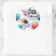 Featuring a cute astronaut floating among colorful planets, stars, and a magical galaxy background, these stickers are perfect for space-themed birthday parties. Personalize them with your child’s name to make your party decorations even more special.