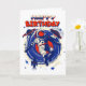 Astronaut floating through space surrounded by UFOs, stars and rockets. Hope your birthday is out of this world. Add a name in the personalize area.