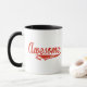 I was thrilled this came out so well. It is a very attractive mug with the colored handle and interior. Being able to personalize it was easy! It was designed for an end of the year thank you gift to the special recipient. perfect. Text lines up perfectly parallel to the top edge of the mug.