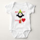 This adorable baby shirt features a cute image of a bird with a red Christmas gift. He is wearing a bright lime green striped stocking cap. The red text says BEST GIFT EVER. Next to the gift is a red heart with your baby's name across it. Sweet, and personalized for your baby! *Clip art used in this design is copyrighted by Encore Software, Inc., which permits use to its licensors. All rights reserved.