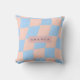 Personalized Baby Blue and Peach Wavy Checkered Throw Pillow