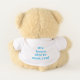 Personalized Baby Boy Teddy Bear design features the phrase, "Welcome to the World, (Baby's name here)." in blue print on front. Image of balloons is featured at top left. Reverse side reads, "It's so beary nice to meet you!" in same blue lettering.