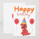 A personalized birthday card with a cute baby dinosaur in a party hat and text Happy Birthday. The personal name and age is easy to edit or remove completely. You can get physical cards or download the file and print on your home printer.